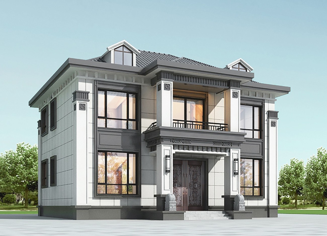 虹口005 两层新中式(11.36x11.76米)-【易设计】