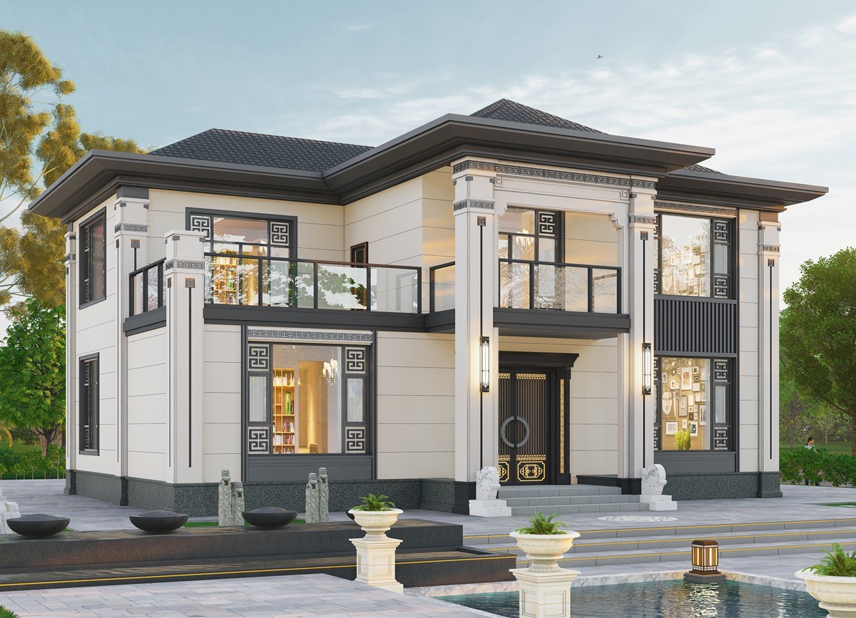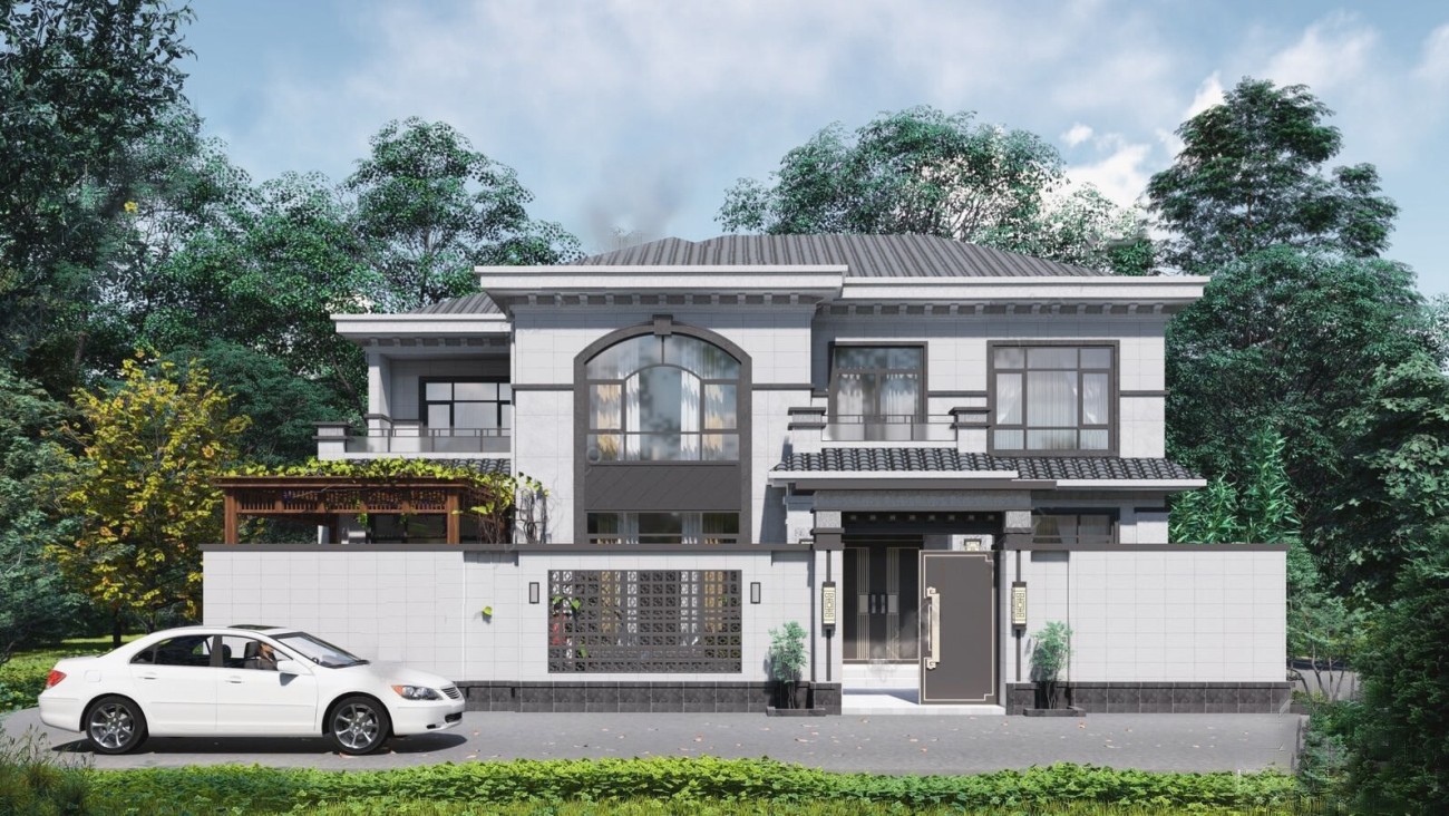 虹口009 两层新中式(11.45x14.76米)-【易设计】